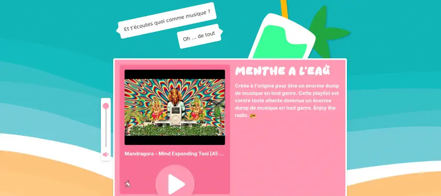J’apprécie beaucoup les webradios et à chaque fois que j’en écoute je me dis que potentiellement une autre personne quelque part vibe sur la même musique que moi. Il va sans dire que j’ai toujours été curieux de faire ma propre webradio. Mais pour ça il faut du contenu musical à diffuser… C’est là qu’arrive « Menthe à l’eau ».