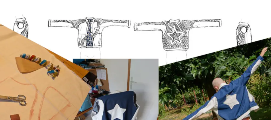Tout à commencé par une chaude après-midi d’été Non en réalité cette idée est partie d’un dessin que j’ai gribouillé après avoir vu une super veste sur Pinterest. Et comme pour beaucoup de mes choix dans la vie, à partir du moment ou je suis pas exactement sûr je demande une validation extérieure de la part de ma très chère soeur.